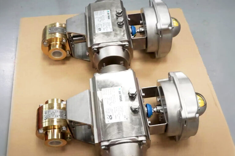 A customer required two aluminium bronze valves with screwed ends (an uncommon configuration not available from stock), needed them actuated to a fail-close specification, and coated for offshore service.